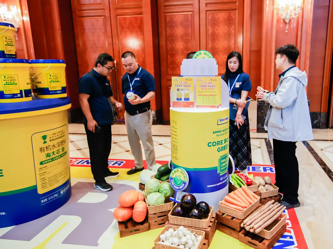此外,峰会现场设有产品展示、洽谈交流区,应用海大生物集团最“芯”科技,集中呈现了海大生物海状元海藻肥、温喜鱼蛋白肽、海谷特、传奇以及出口SEAWINNER品牌五大系列部分新产品,涵盖经作和大田区,继续引领特肥行业发展。